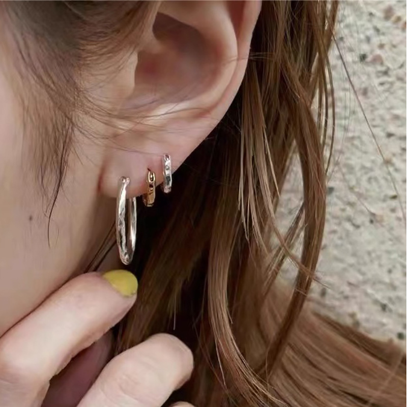 Japanese Hammer Pattern Simple Circle Earrings 925 Silver Needle Advanced Earrings New Style plain Circle Earrings Wholesale