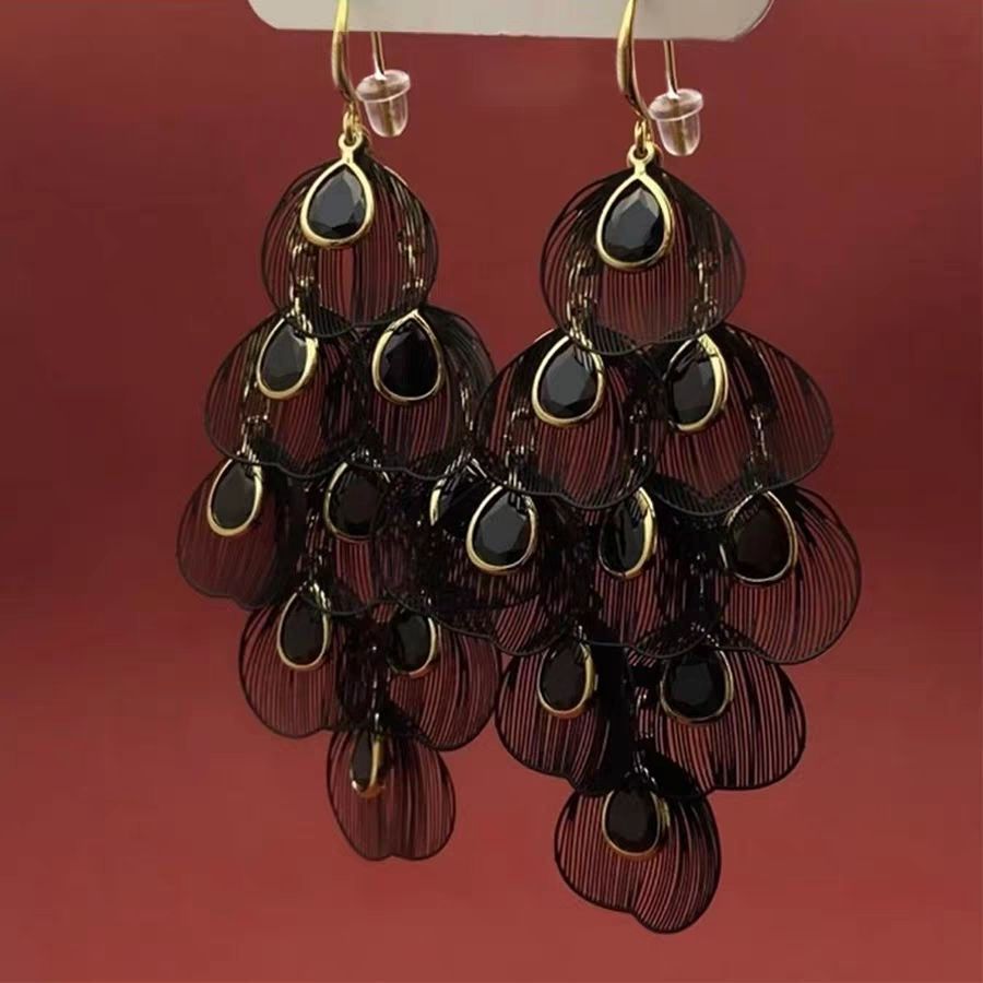 High-End Earrings New Style Bohemian Ethnic Style Phoenix Tail Large Earrings Long Style Personalized Exaggerated Tassel Earrings Jewelry
