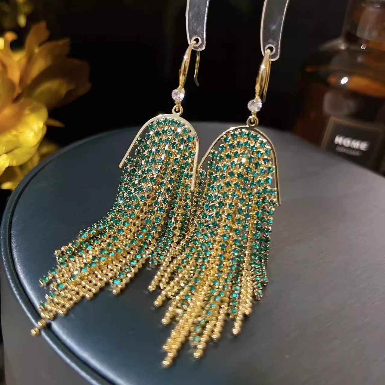 925 Silver Hook European and American Fashion Plated Earrings Colorfulful Rhinestone Tassel Earrings Elegant Niche Earrings High-end