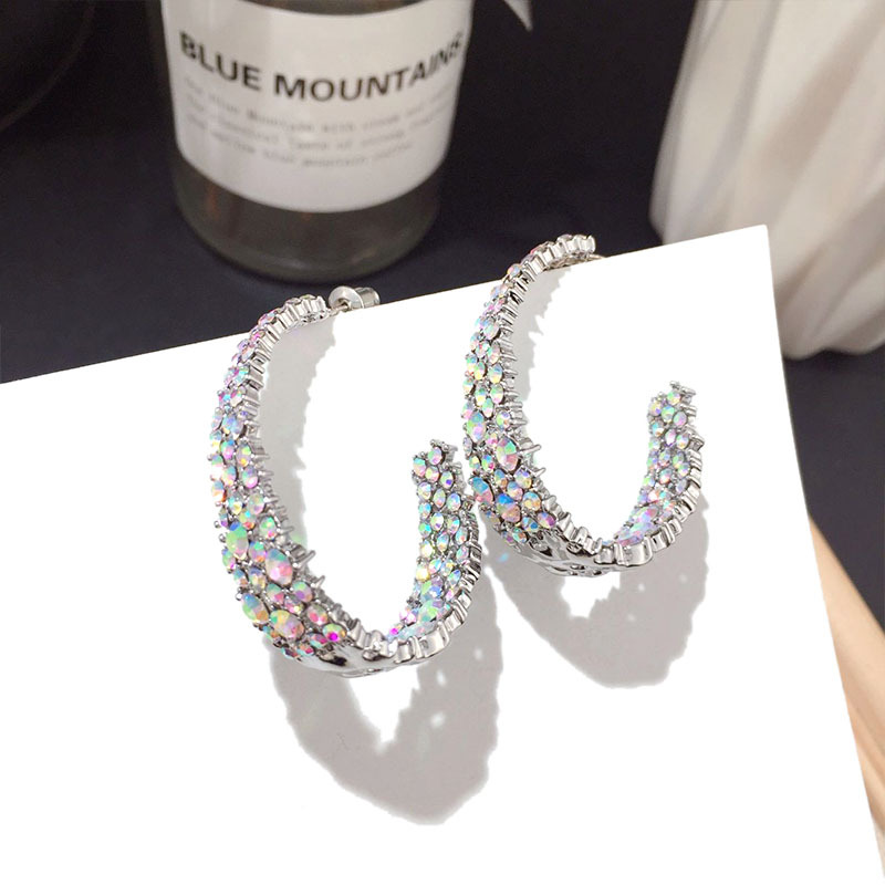 Tongfang Jewelry Korean New Style Personality Circle Earrings All-match Full Diamond Fashion Super Flash Silver Pin Internet Celebrity Earrings for Women