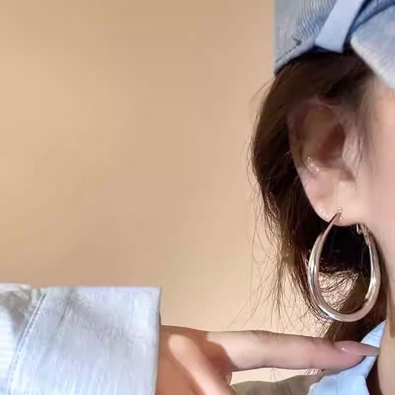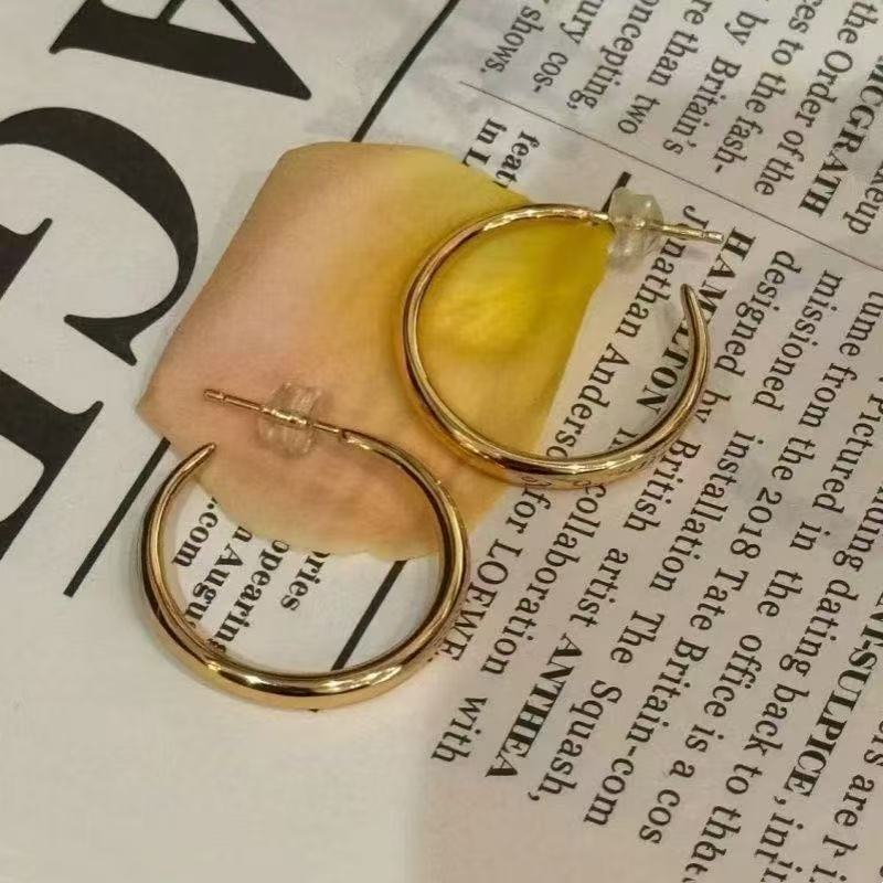 2025 New Plain Hoop Light Luxury Versatile Earrings French Fashion Hoop Simple Elegant High-End Women's Earrings