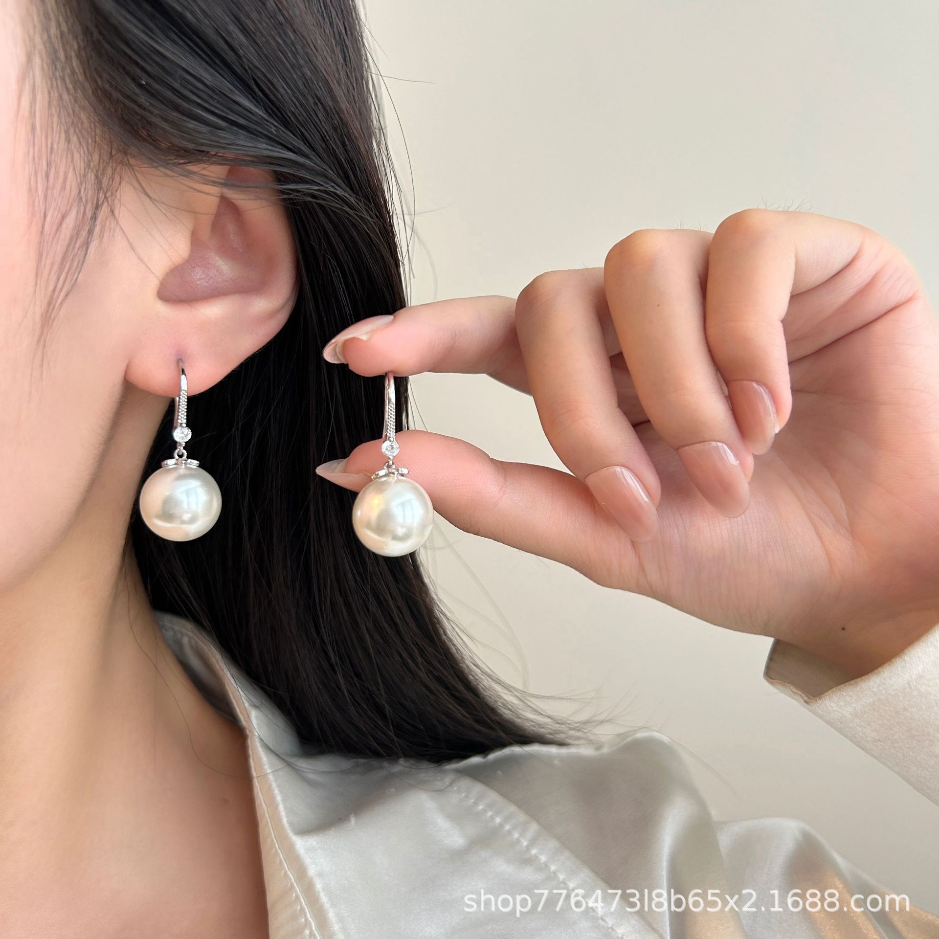 Pure Silver 999 Shijia Pearl Earrings for Women 2025 New Style Earrings Light Luxury Elegant High-End Autumn and Winter Earrings Wholesale