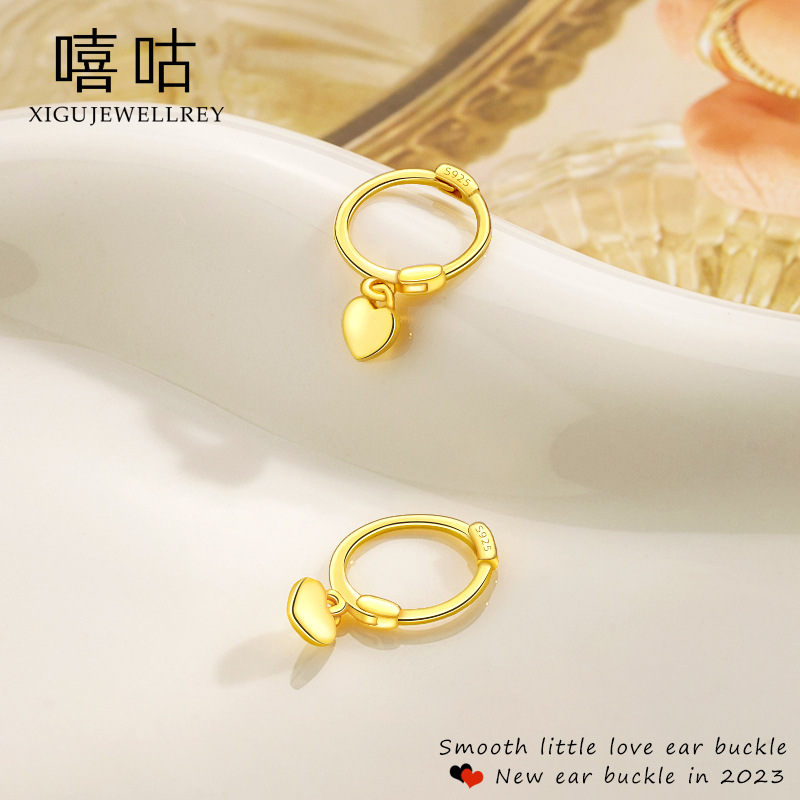 Xigu E1424 S925 silver face small love ear buckle fashion simple sweet birthday gift for girlfriend earrings
