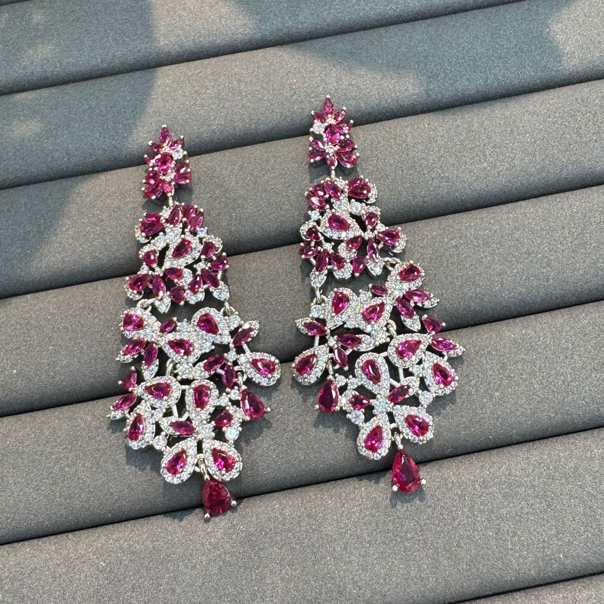 Luxurious Heavy-Duty Pink Party Ball Performance Micro-Embellished Earrings Party Dress with Elegant Earrings
