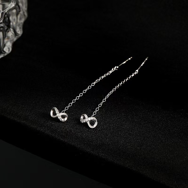 S925 Sterling Silver 8-word Tassel Ear Line Women's Light Luxury Elegant High-end Niche Ear Accessories Simple Exquisite Diamond Earrings