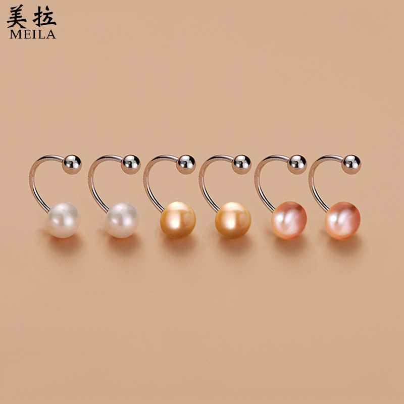 s925 Sterling Silver Round Beads Screw Natural Freshwater Pearl Earrings Women's French Retro High-end Fashionable Elegant Earrings