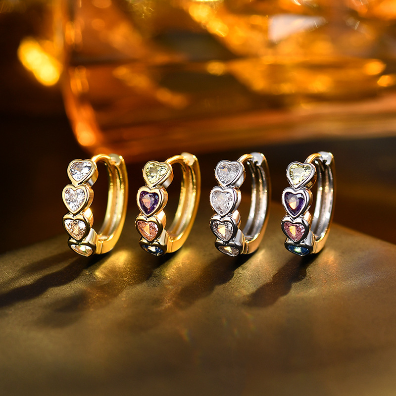 952 Silver Needle New Heart-shaped Stone Ear Ring Colored Stone Women's Japanese and Korean Popular Hot Style INS Love Earrings