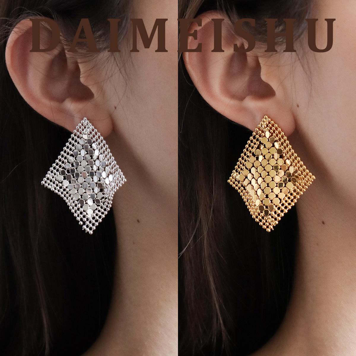 European and American Fashion Exquisite Versatile Rhombus Checkered Earrings Light Luxury High-End Versatile Silver Needle Earrings with a Sense of Design Niche