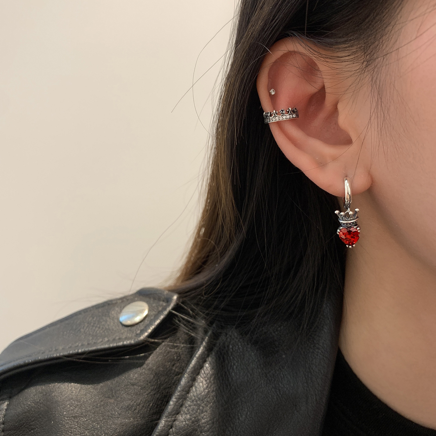 Original Ke Crown Pigeon Blood Zircon Earrings Women's Earrings Niche Design Light Luxurious High-End Temperament Earrings