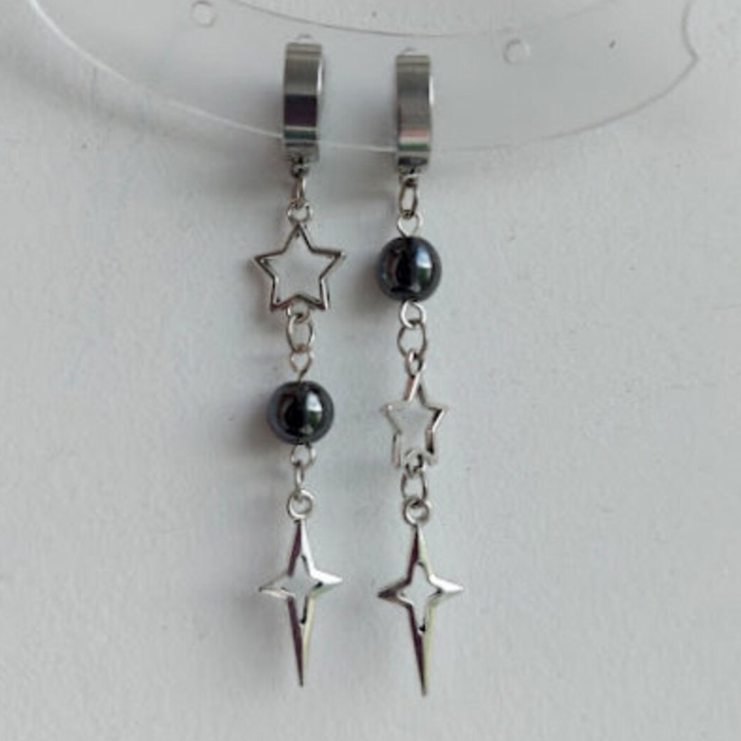 Mismatched Starry Sky Earrings Polaris Jewelry Silver Emo Rock Millennial Gothic Style Factory Direct Sales
