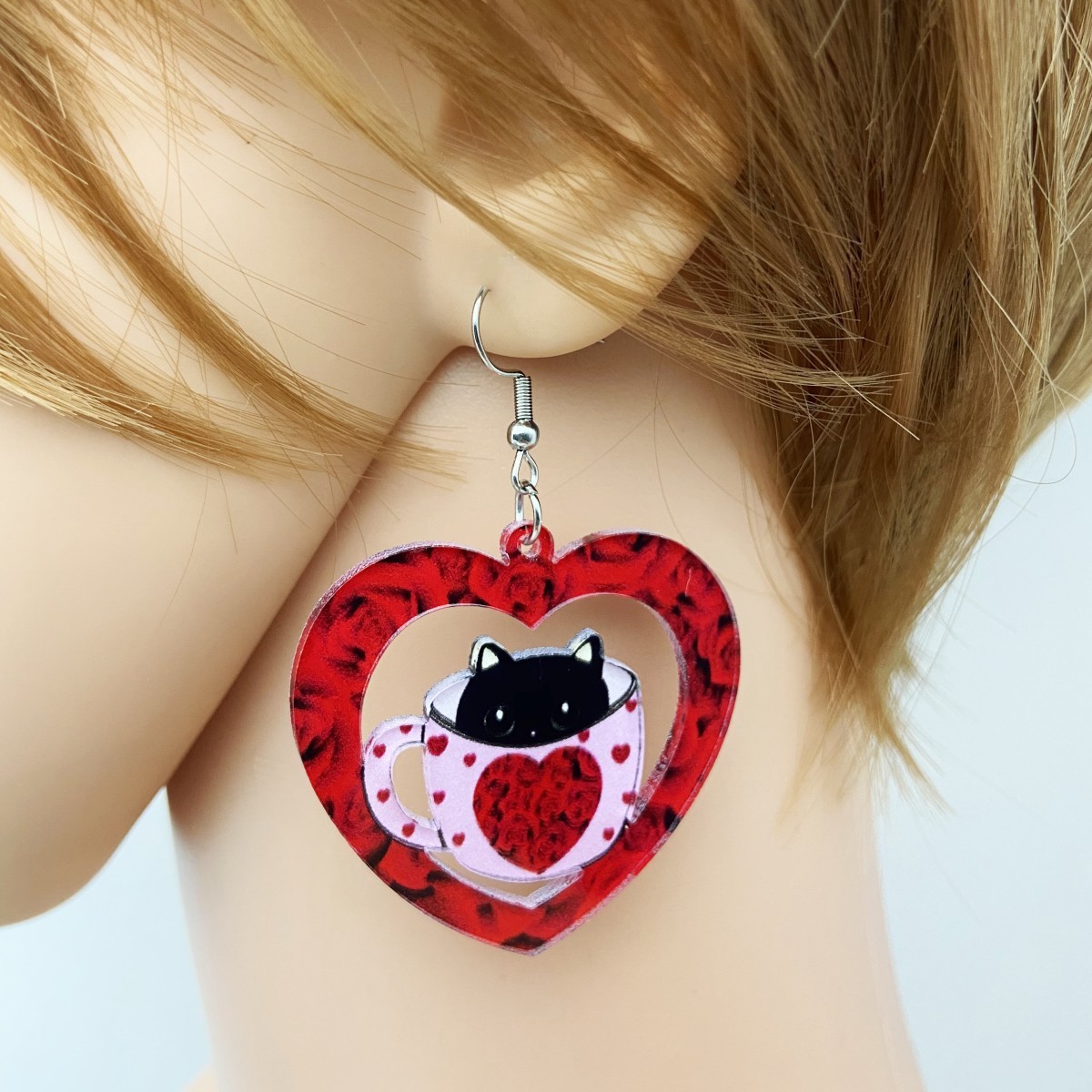Cross-Border Wholesale European and American Valentine's Day Peach Heart Cup Cute Cat Mushroom Acrylic Earrings Women's Earrings Wholesale