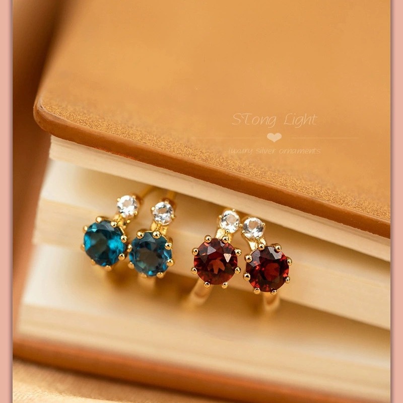 Cross-border s925 sterling silver ear buckle Blue Planet earrings light luxury women's all-match silver jewelry silver925 blue zircon ear