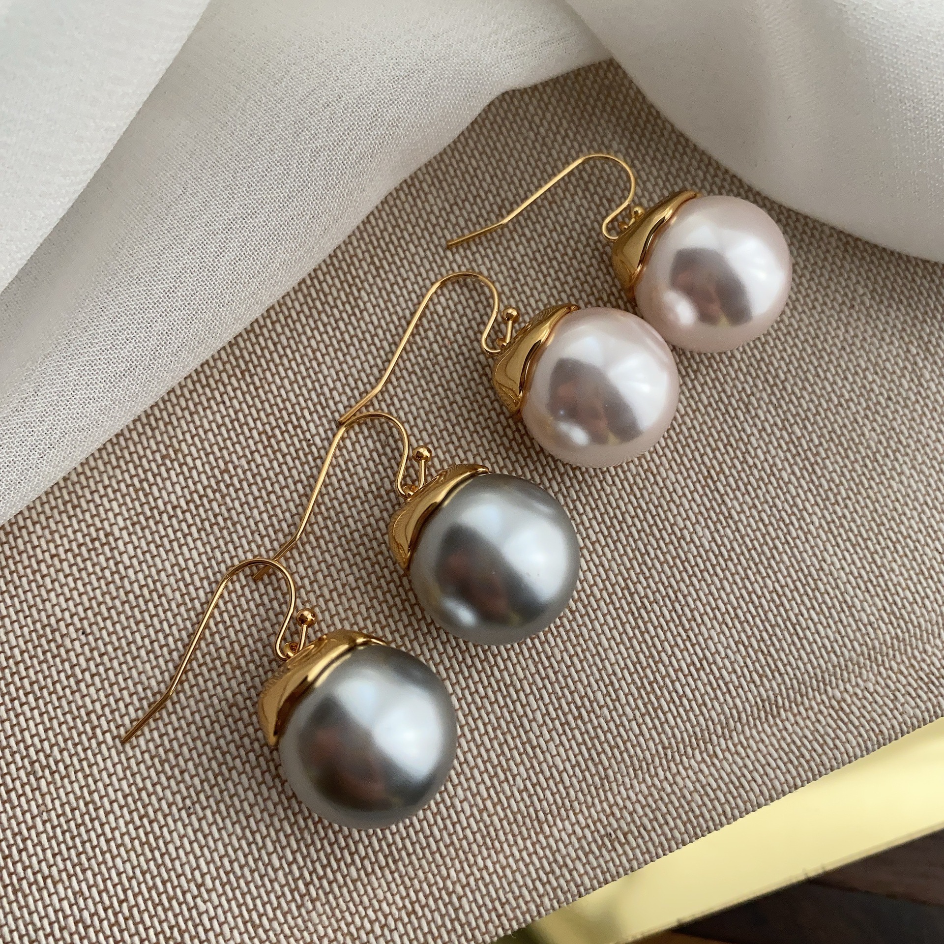 New Artificial Pearl Earrings, Simple and Personalized Ear Hooks, Simple and Versatile, Fashionable Gold High-End Earrings for Women