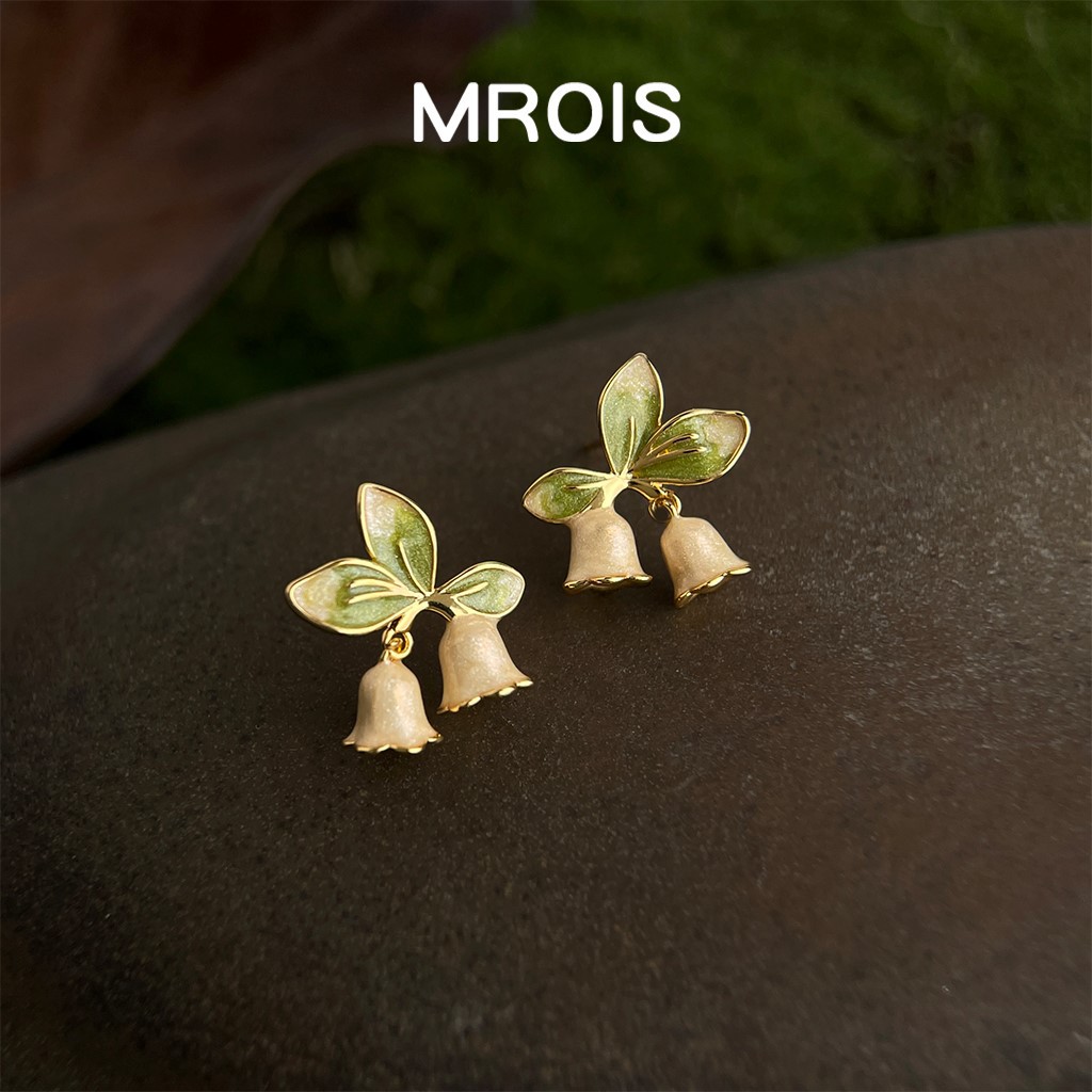 Lily of the Valley ~ Original Thick-Plated 18K Real Gold Enamel Glaze Flower Earrings Niche Creative Sweet High-End Earrings for Women