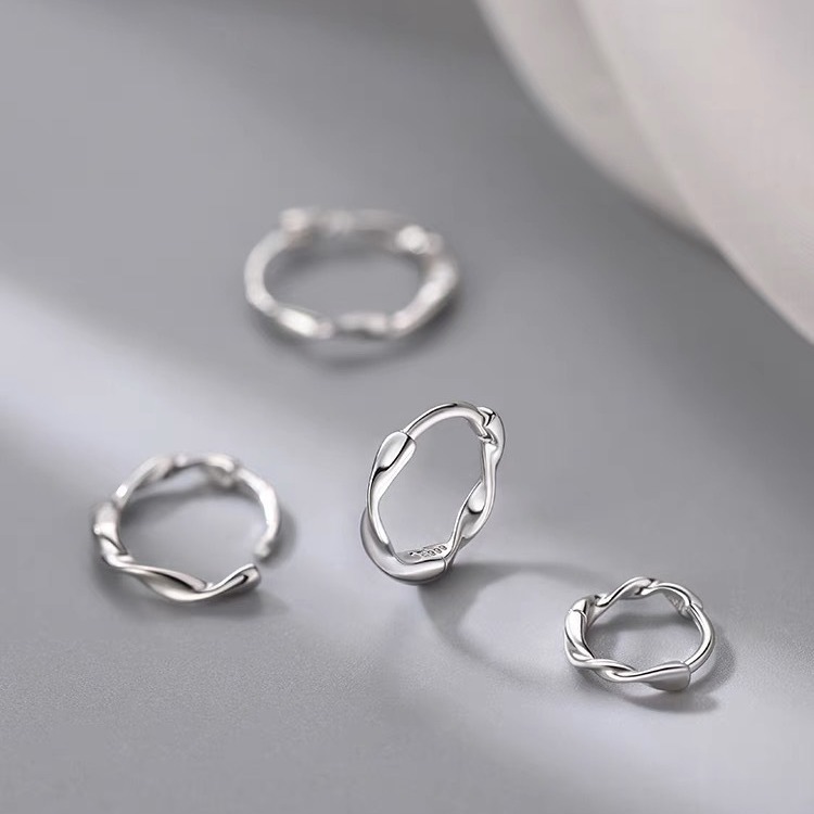 Square S999 Sterling Silver Mobius Earrings Women's Niche Design High-Level Sleeping Free Ear Buckle Foot Silver Earrings