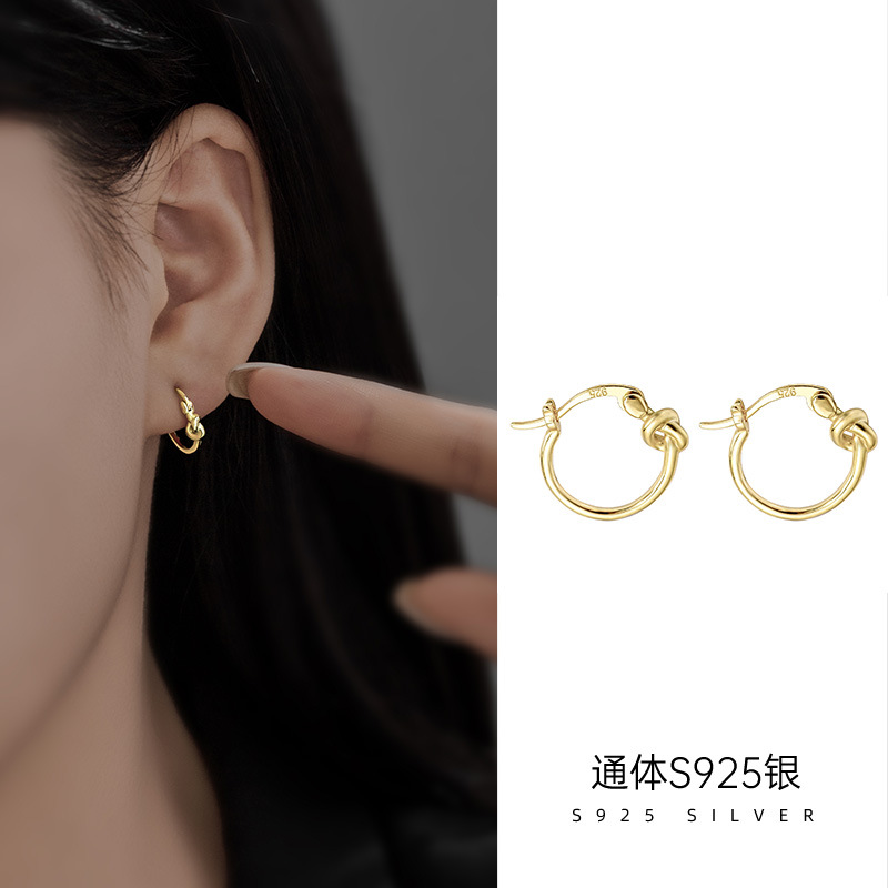 Under Rong Tree S925 Silver Korean Style Knot Plain Hoop Earrings Women's Casual Niche Easiest for Match Circle Earrings Trendy