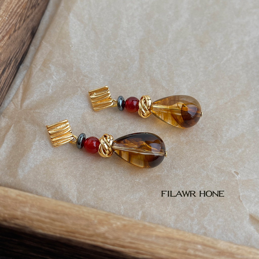 Artistic Retro Maillard Style Geometric Water Drop Handmade Design New Earrings Factory Silver Needle Earrings Jewelry for Women