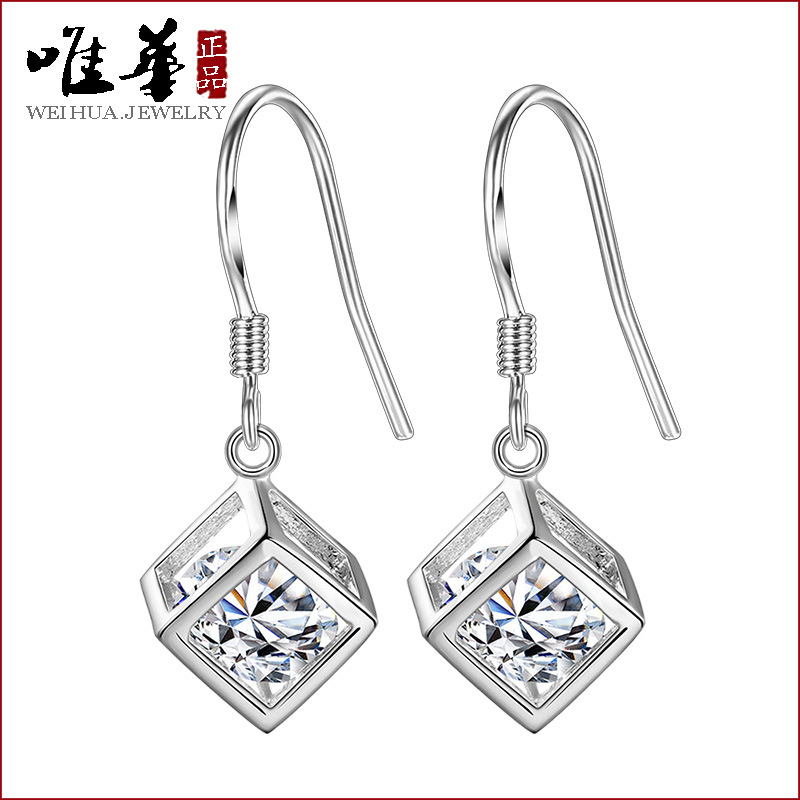 Rubik's cube love window silver earrings Fashion Square block earrings girls ear hook Korean ear jewelry manufacturers in stock