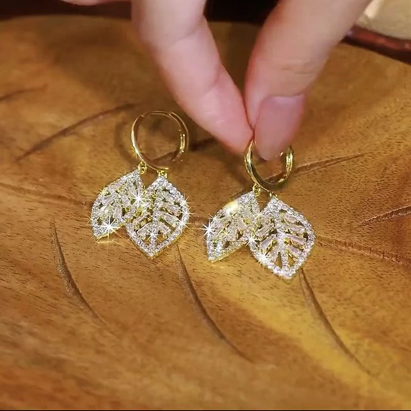 Designed Diamond Leaf Tassel Earrings, Niche Design, Super Shiny Leaf Earrings, Elegant and Versatile Earrings