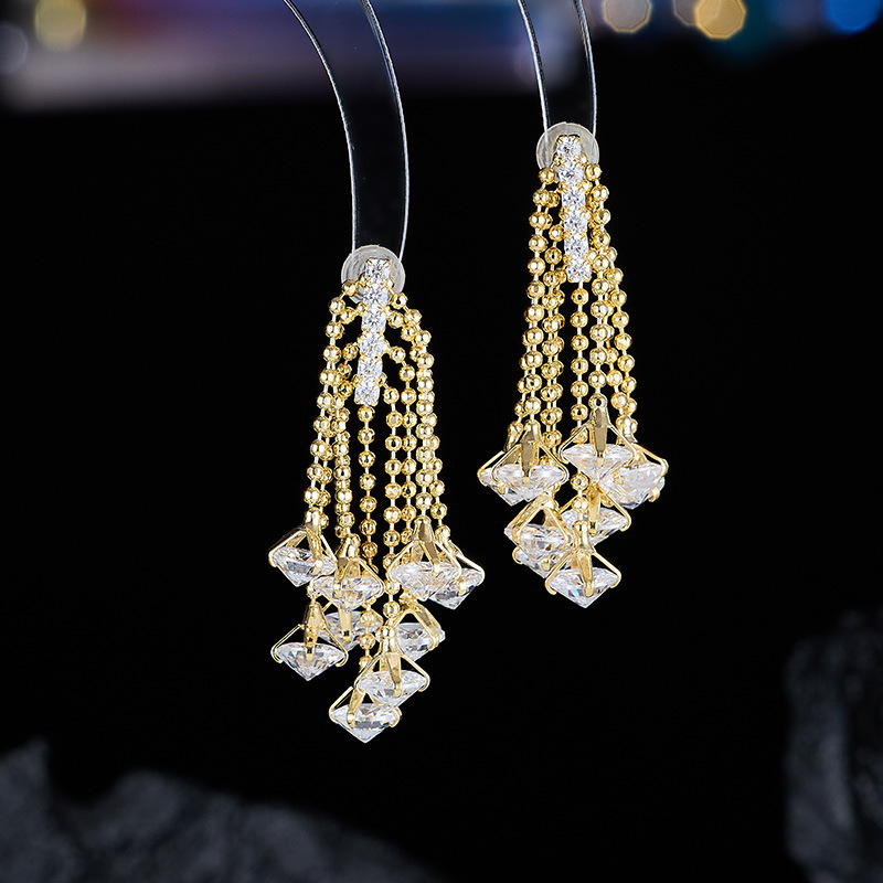 High-End Sparkling Zircon Tassel Line Earrings S925 Silver Needle Accessible Luxury Versatile Banquet Dress High-End Earrings