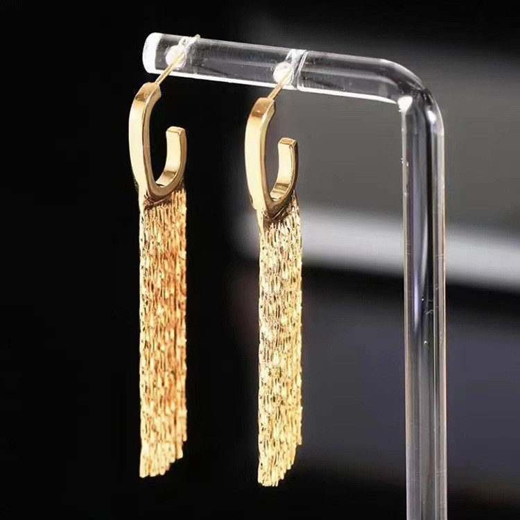 High-grade metal tassel ear hook earrings for Women summer light luxury niche design socialite temperament long earrings