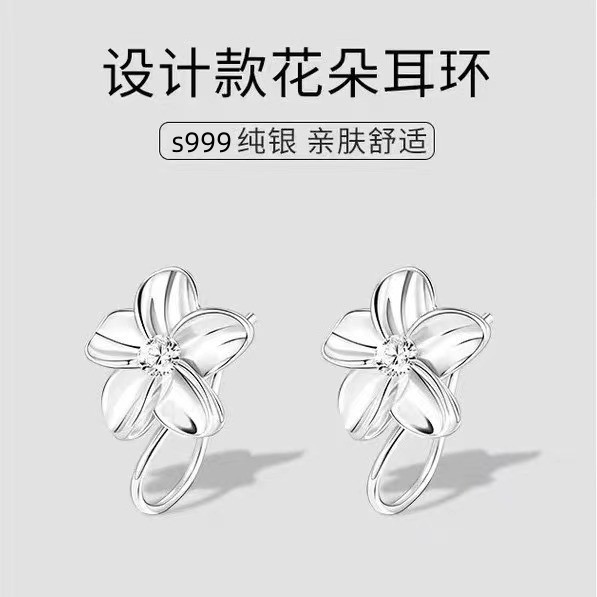 s999 sterling silver personalized fresh earrings high color value simple petals students Joker ins ins ear hole earrings wholesale