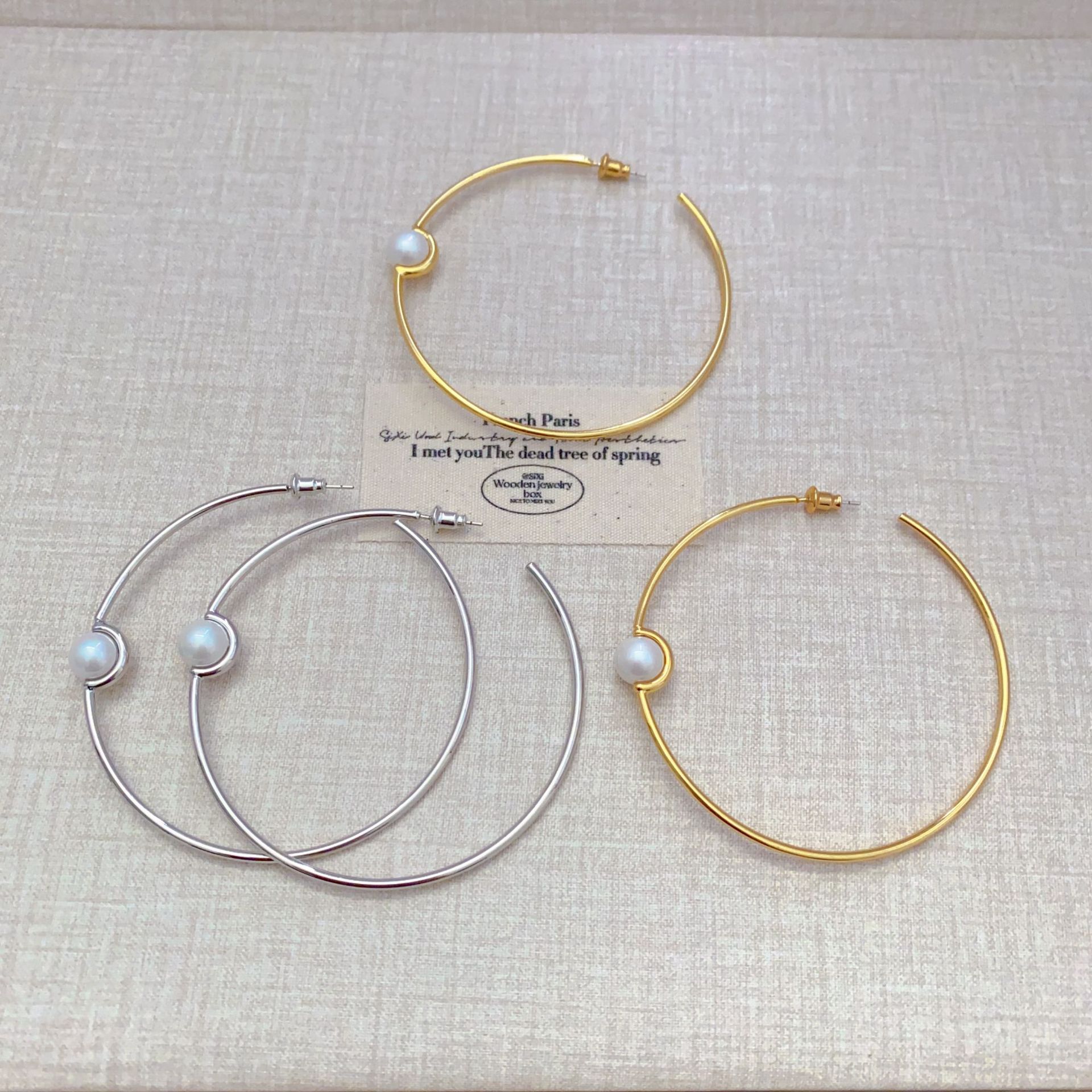 New Pearl Large Hoop Glossy High-End Elegant Fashion Earrings 925 Silver Needle Copper Plated Real Gold Accessible Luxury Earrings for Women