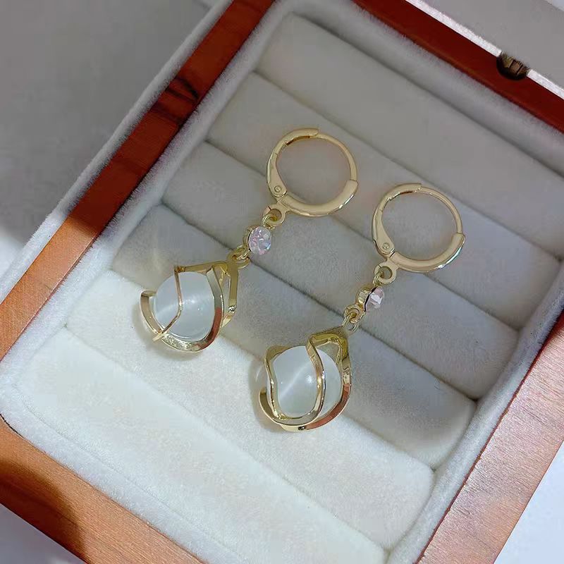 Fashion Cat's Eye Stone Earrings Simple Exquisite Earrings Niche Fashion Commuter Versatile Personality Temperament Earrings