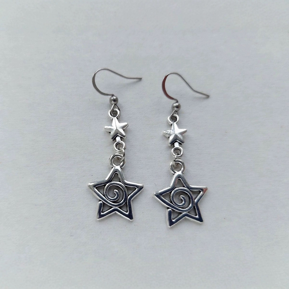 Whimsical Gothic Star Shaped Inlaid Silver Earrings Rotating Gothic Hook Natural Aesthetic Handmade Jewelry