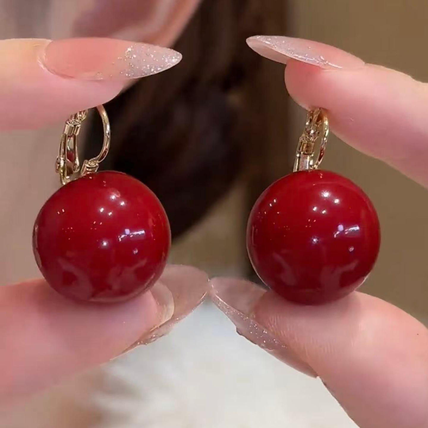 Ankola Red Pearl Earrings 2025 New Popular Earrings Accessible Luxury High-End Retro Elegant Earrings Silver Needle