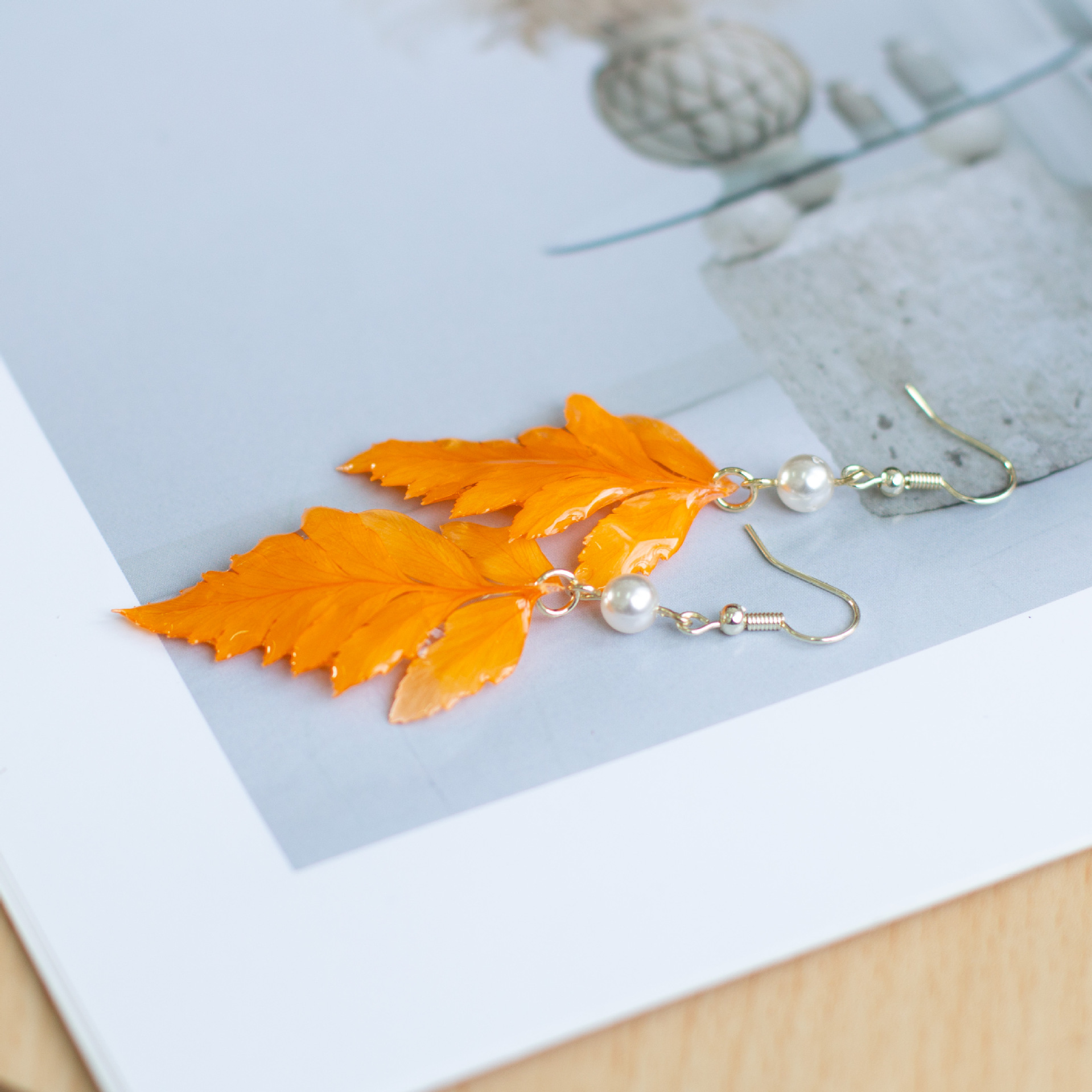 Fern Feather Plant Epoxy Earrings for Women Fresh Dopamine Color Niche Handmade Jewelry Personalized Light Luxury Earrings