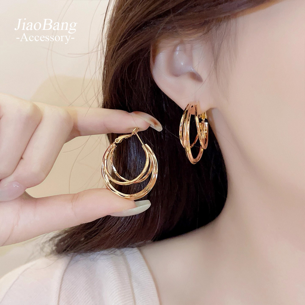 Minimalist Multi-Layer Geometric Hoop Earrings European and American Style Fashionable Elegant Earrings Niche Versatile High-End Earrings