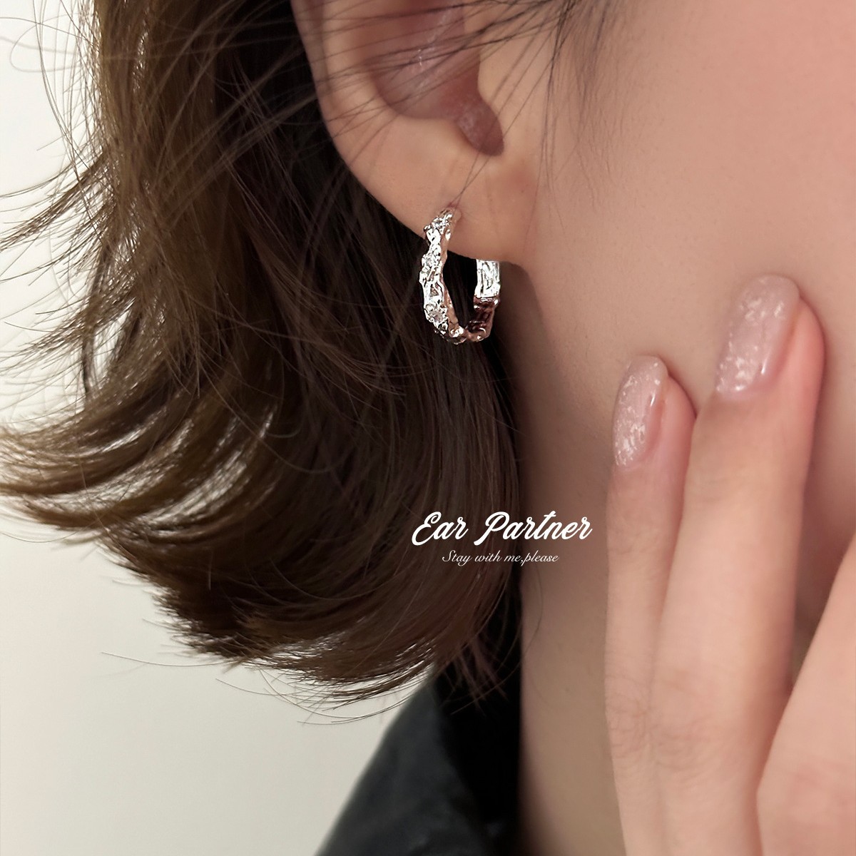 New Irregular Tin Foil Pattern Silver Needle Earrings for Women Niche Simple Fashionable Plain Hoop Earrings Ins High-End Earrings