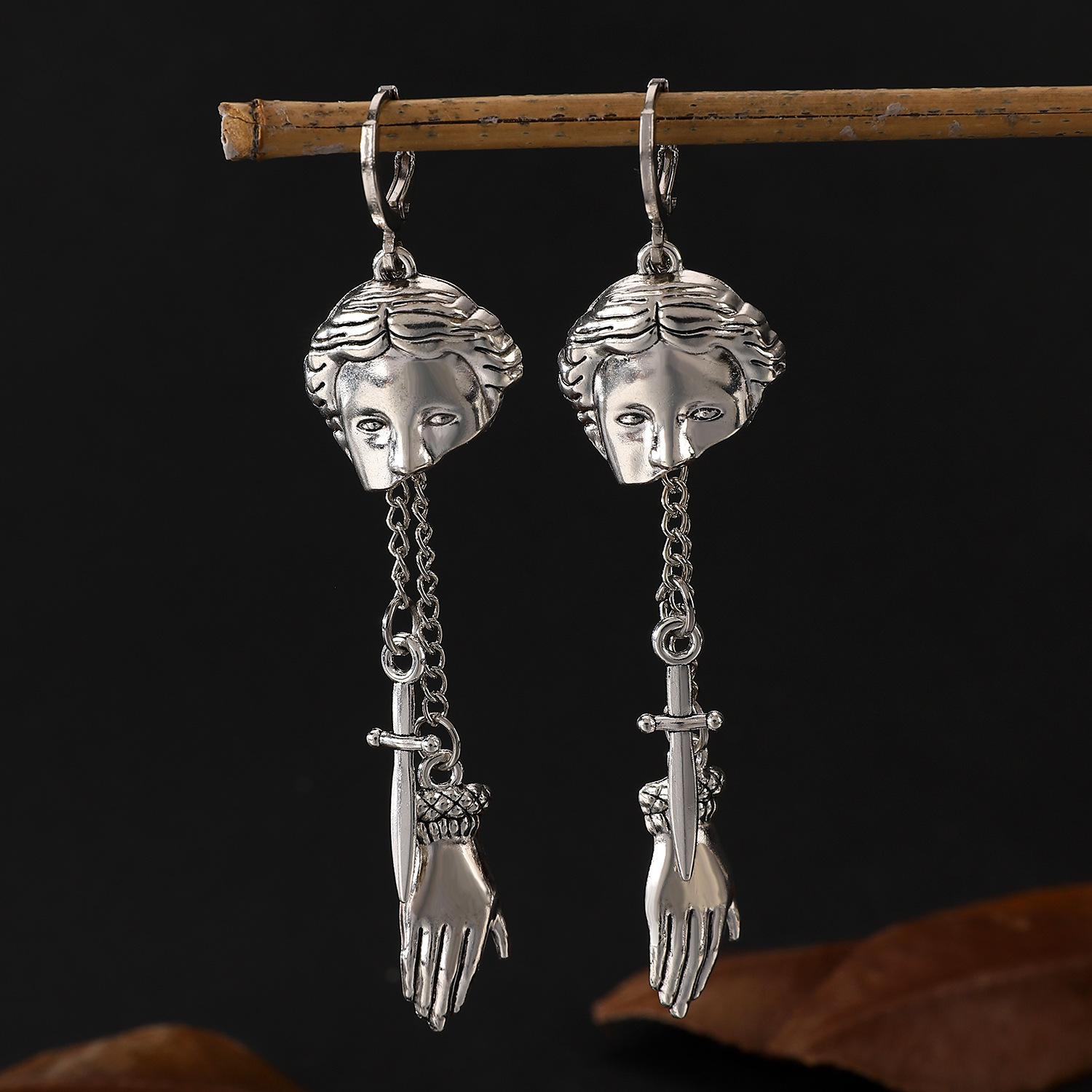 European and American Retro Gothic Punk Figure Hand Mask Cross Dagger Earrings Halloween Earrings Cross Border Jewelry Wholesale