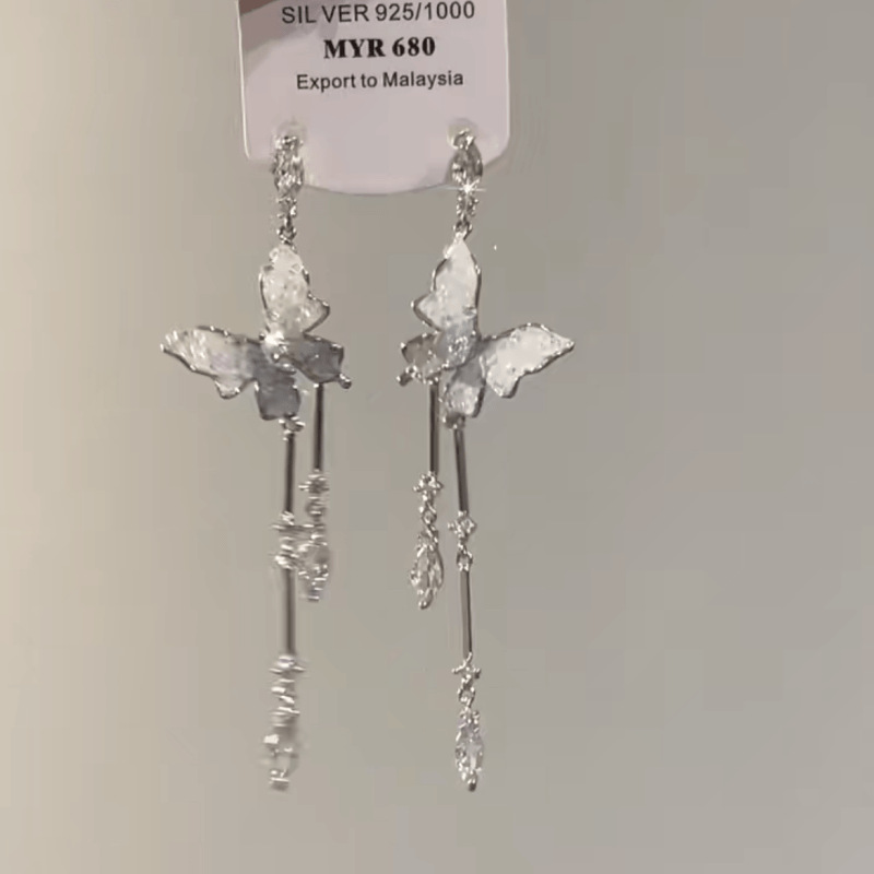 Korean New Gradual Crystal Butterfly Tassel Earrings Niche Design High-end Long Earrings Silver Pin Earrings