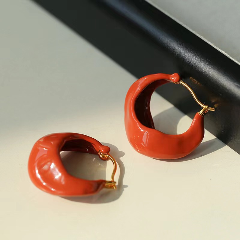 Summer Colorful Oil Dripping Titanium Steel Earrings, Simple Design, Versatile, Light Luxury and High-End, Summer Water Drop Earrings That Will Not Fade