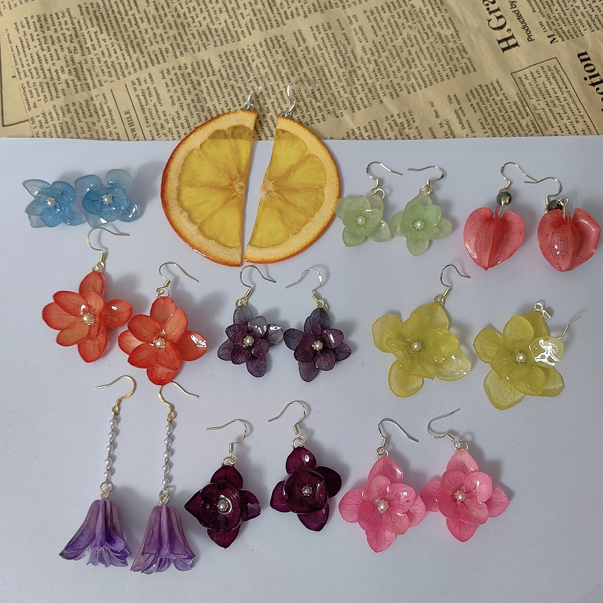 Original Handmade Dried Flower Orange Real Flower Epoxy Earrings Hydrangea Niche Forest Style French Retro Real Flower Earrings for Women