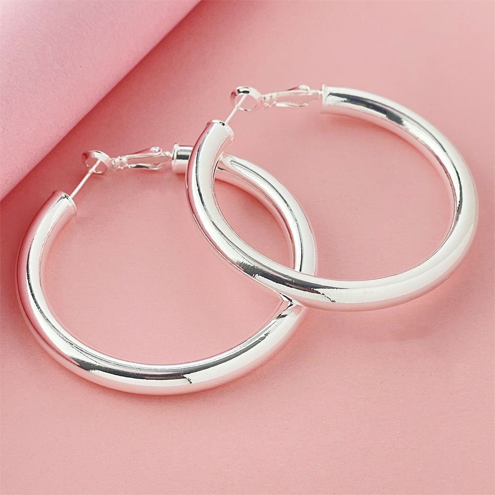 Foreign trade jewelry wholesale copper plated 925 silver 5CM hollow ear ring temu AliExpress hot sale