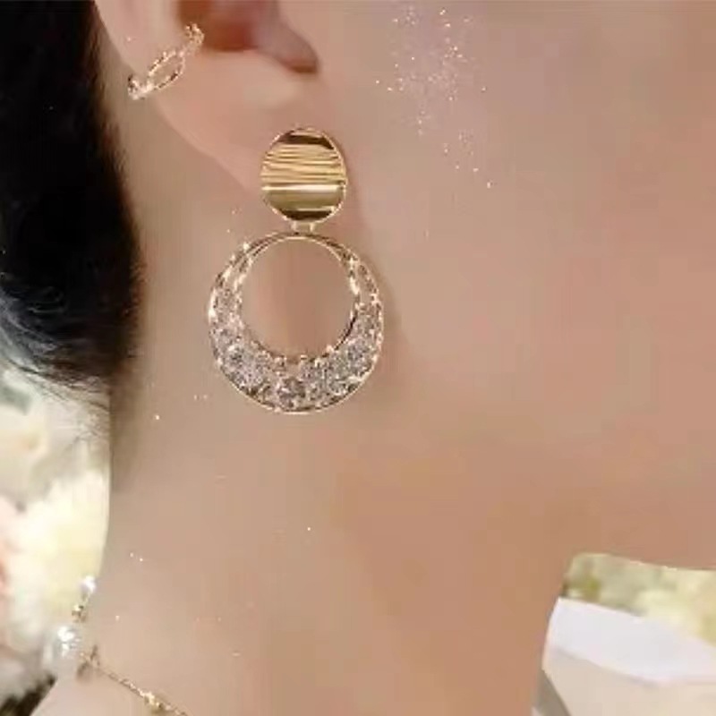Silver Color Ring s925 Silver Needle Ear Ring Women's 2024 New Explosions Round Face Earrings Niche Advanced Sense Ring Earrings