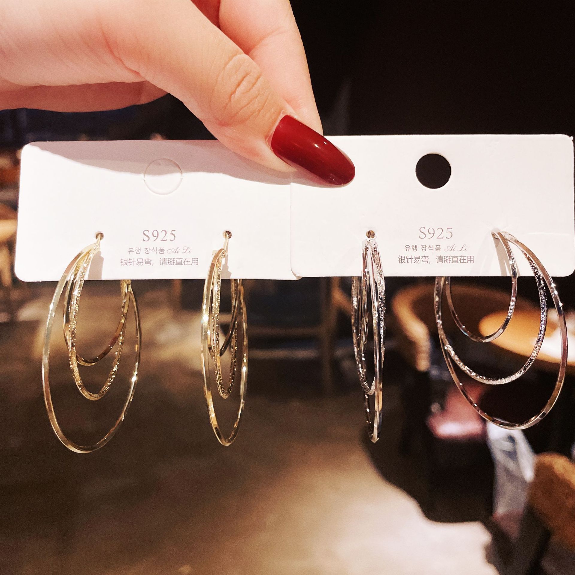 2021 autumn and winter New temperament fashion retro cold wind multi-layer big ear ring Women's European and American personality exaggerated earrings women