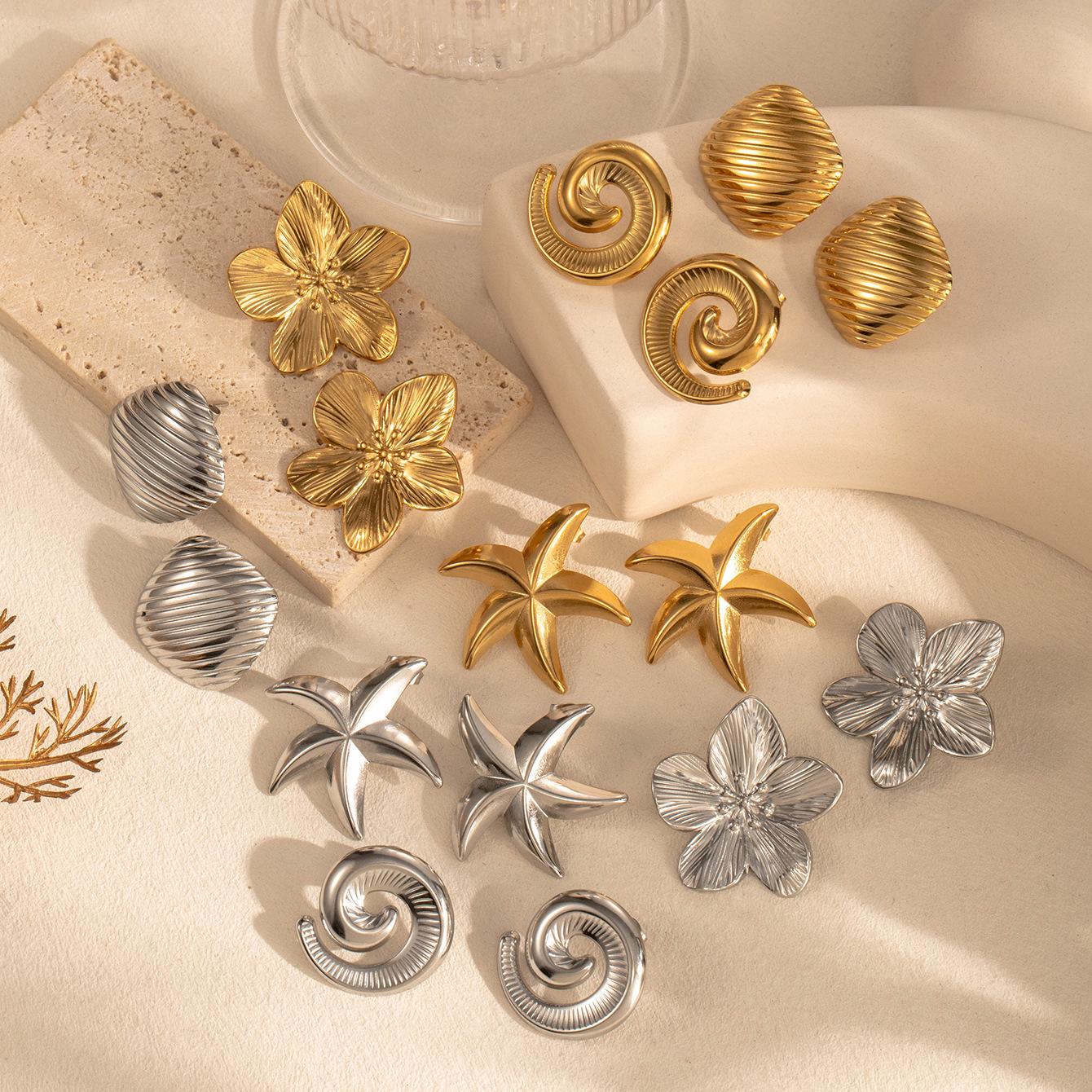 Titanium steel European and American personality all-match stainless steel simple high-end sense starfish geometric flower niche ins earrings