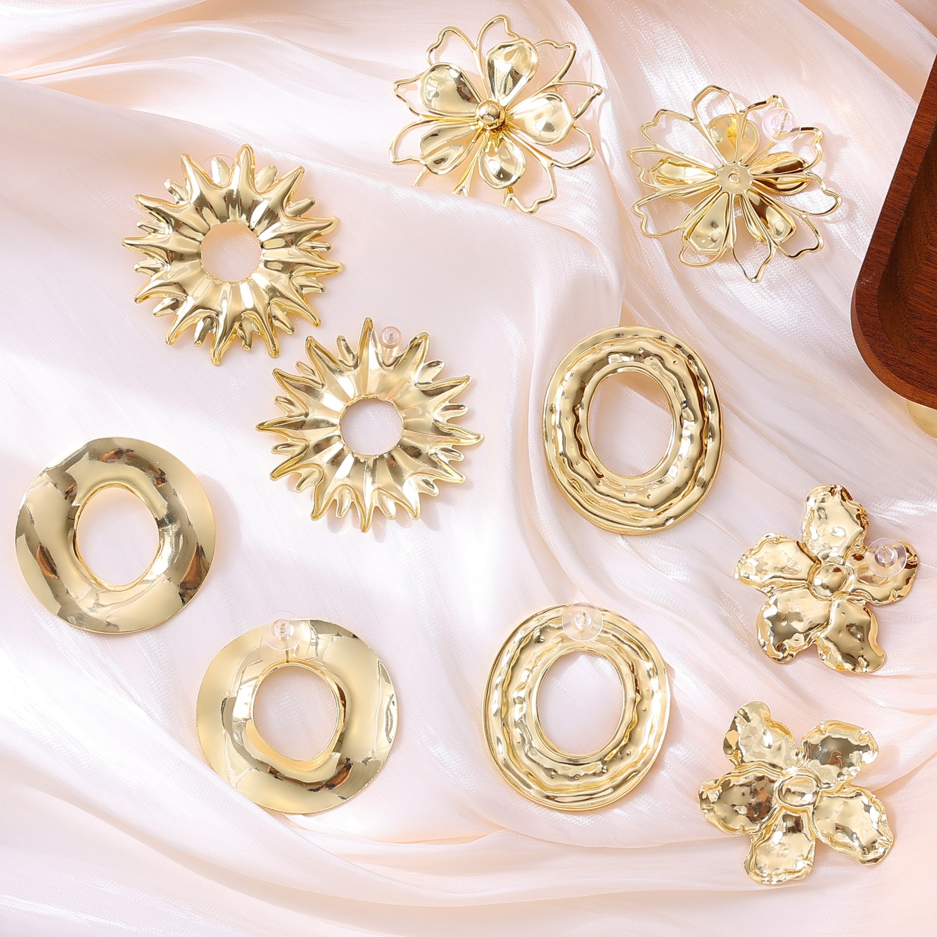 European and American Alloy Sunflower Exaggerated Style Earrings, Vintage Minimalist Style, New Summer Niche Light Luxury Earrings