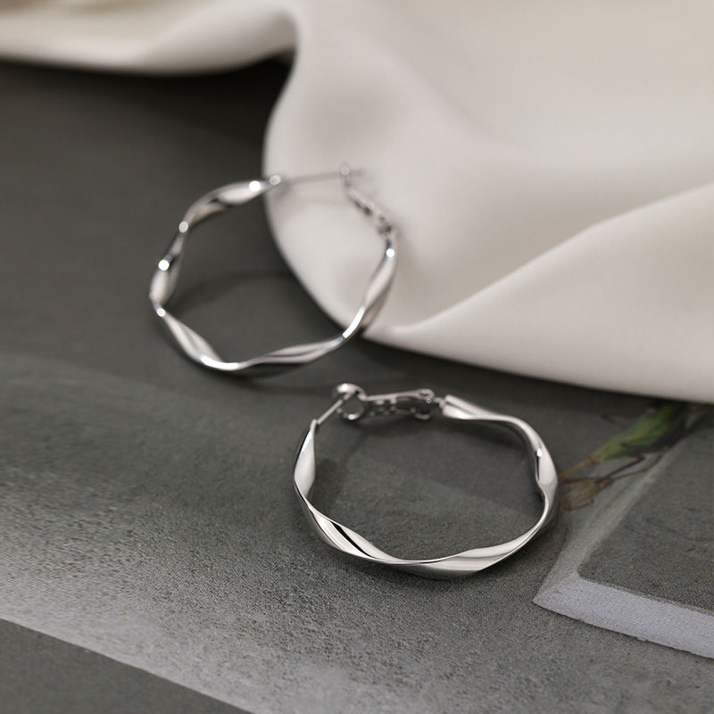 European and American Cross-Border Simple Silver Needle Twisted Earrings, Fashionable and Personalized Cold Style Earrings, Exaggerated Earrings, Niche High-End