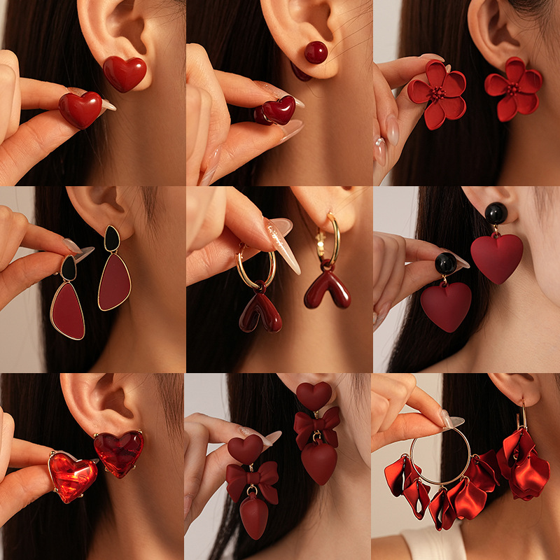 [Peace and Joy] Autumn and Winter New Year Models Are Now Available! Painted Silver Needle Red Festive Earrings