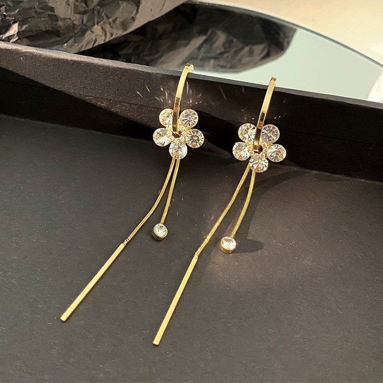 Retro European and American Style Twilight Echo Golden Tassel Zircon Earrings Women's Niche Design Luxury Long Leaf Earrings