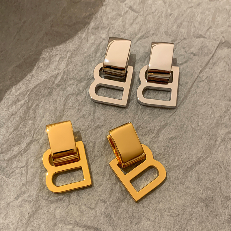 BB Metal silver Letter Earrings Women's Light Luxury High-end Unique Square Ear Buckle Stud Decoration 2024 New Explosions