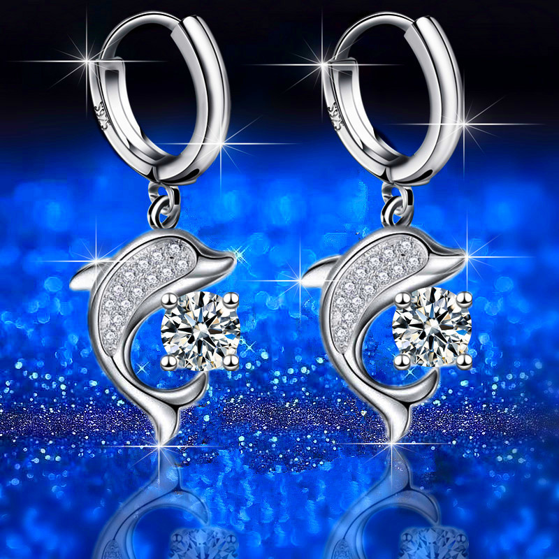 2021 new earrings s925 Silver Dolphin drop earrings women's full diamond long earrings cross-border wholesale