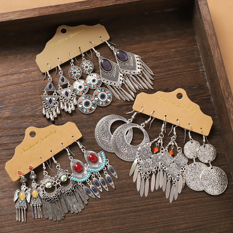 New Chinese Ethnic Style suit Earrings Vintage Niche Long Tassel Bohemian Holiday Style Earrings Women's Earrings