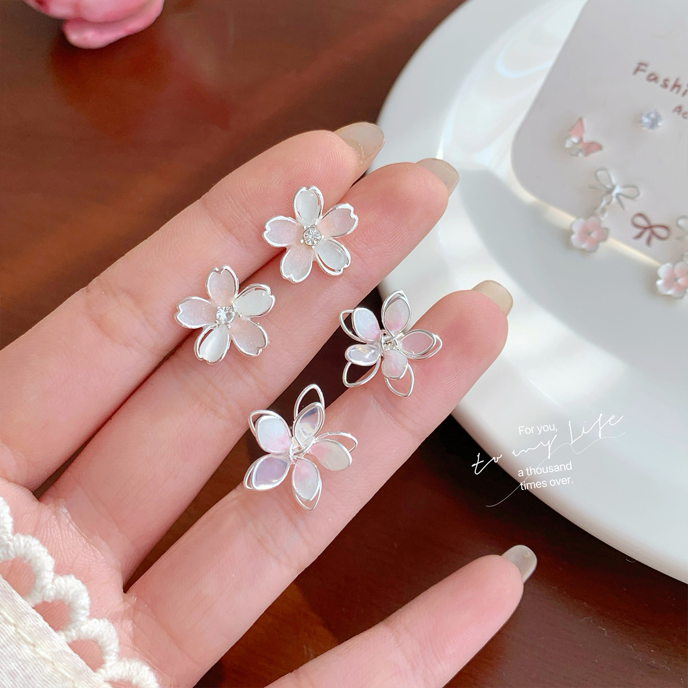 Pink Cherry Blossom Earrings for Women, Silver Needle, Summer Sweet Oil Dripping, Light Luxury, High-End, Super Fairy Butterfly Elegant, Versatile Earrings