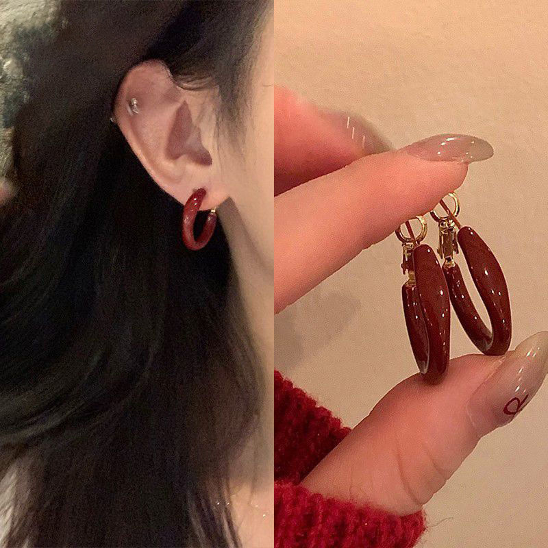 Black Tea Style Ankora Red Small Earrings Niche Design 925 Silver Needle Retro Earrings High-End Ear Piercing Earrings